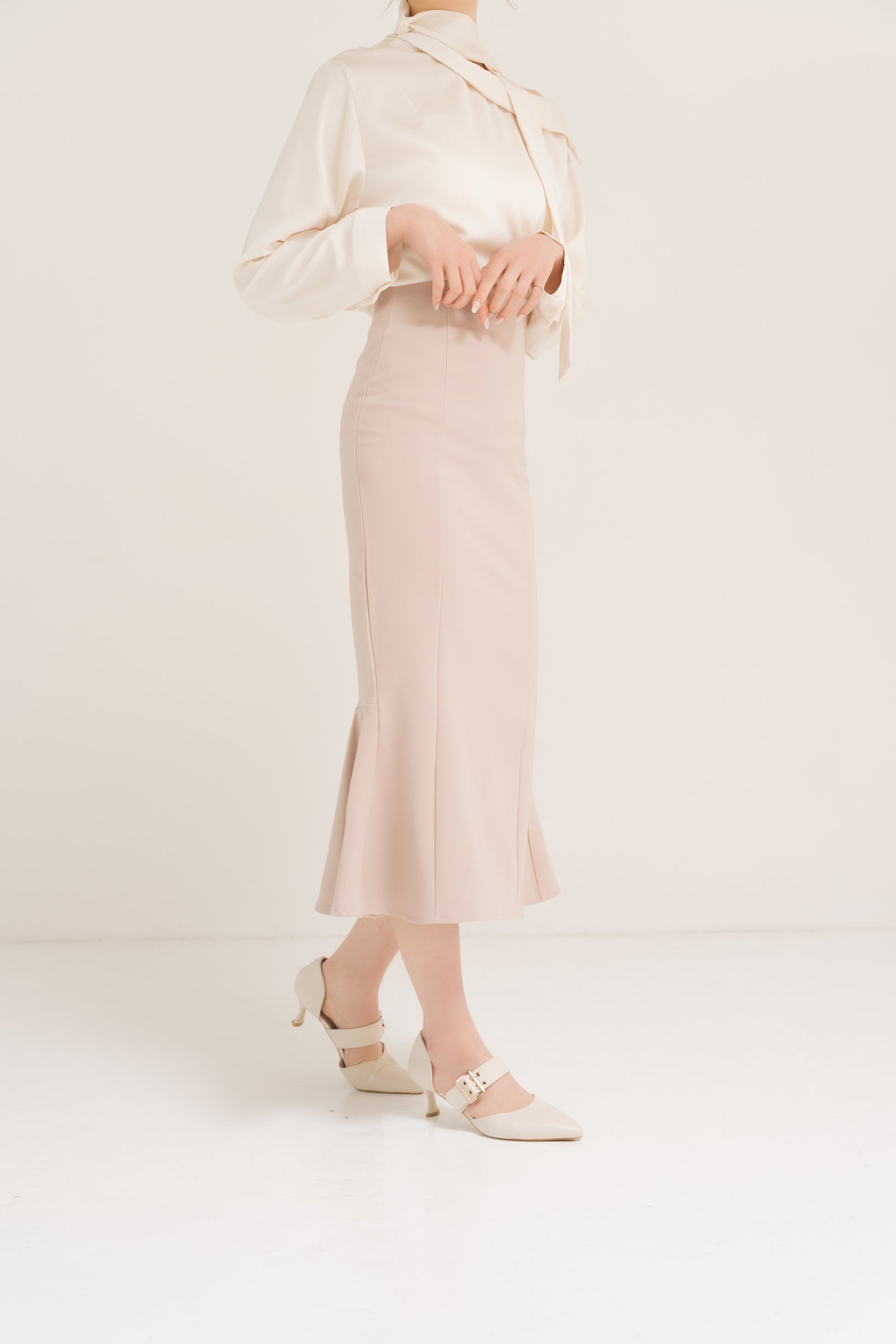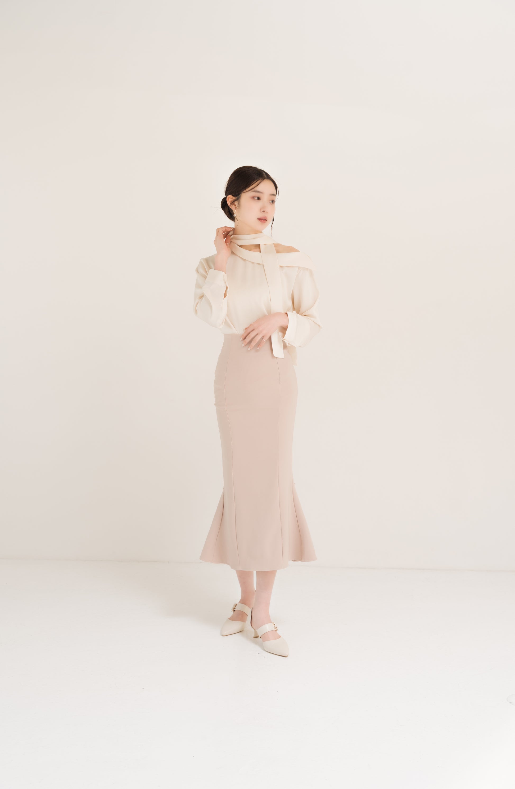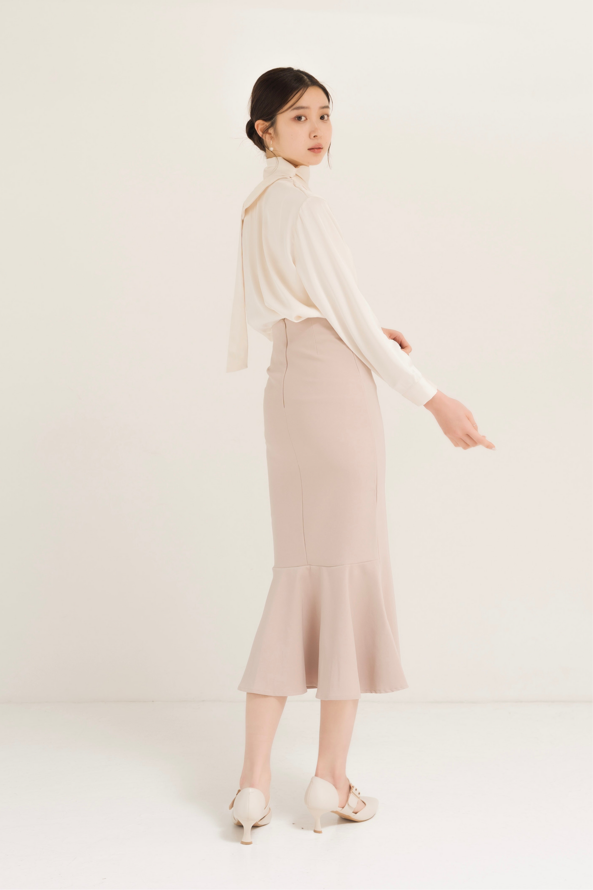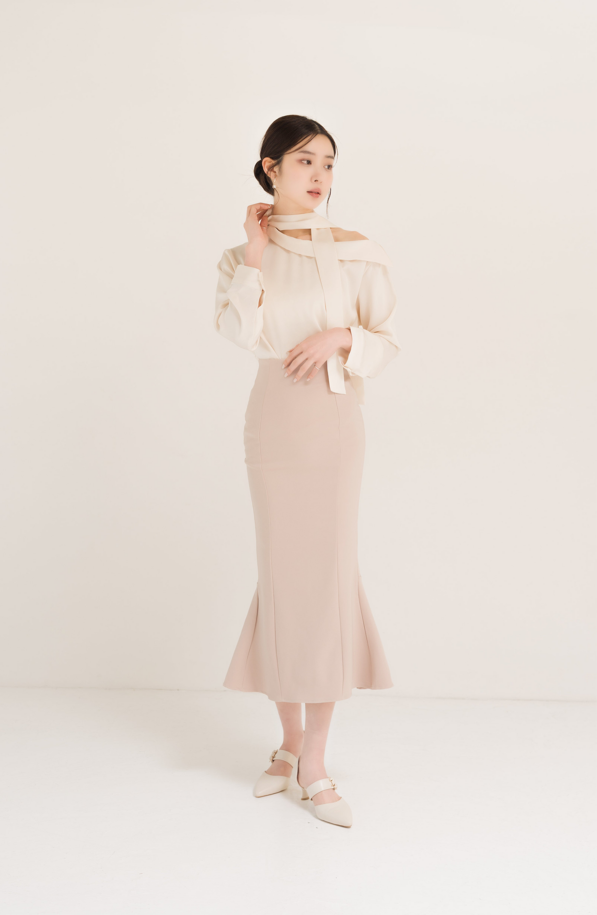 ハイウエストデザインがスタイルアップを叶える、ロング丈のマーメイドスカート。身体のラインに沿って緩やかに広がるシルエットが、女性らしい美しさを引き立てます。腰まわりはすっきりと、裾に向かって流れるようなラインを描くことで、正面はもちろん、後ろ姿まで美しく見せてくれるのが魅力。トップスを選ばず合わせやすく、きれいめにもカジュアルにも馴染む一着。動くたびに上品な余韻を残す、大人のためのマーメイドスカートです。