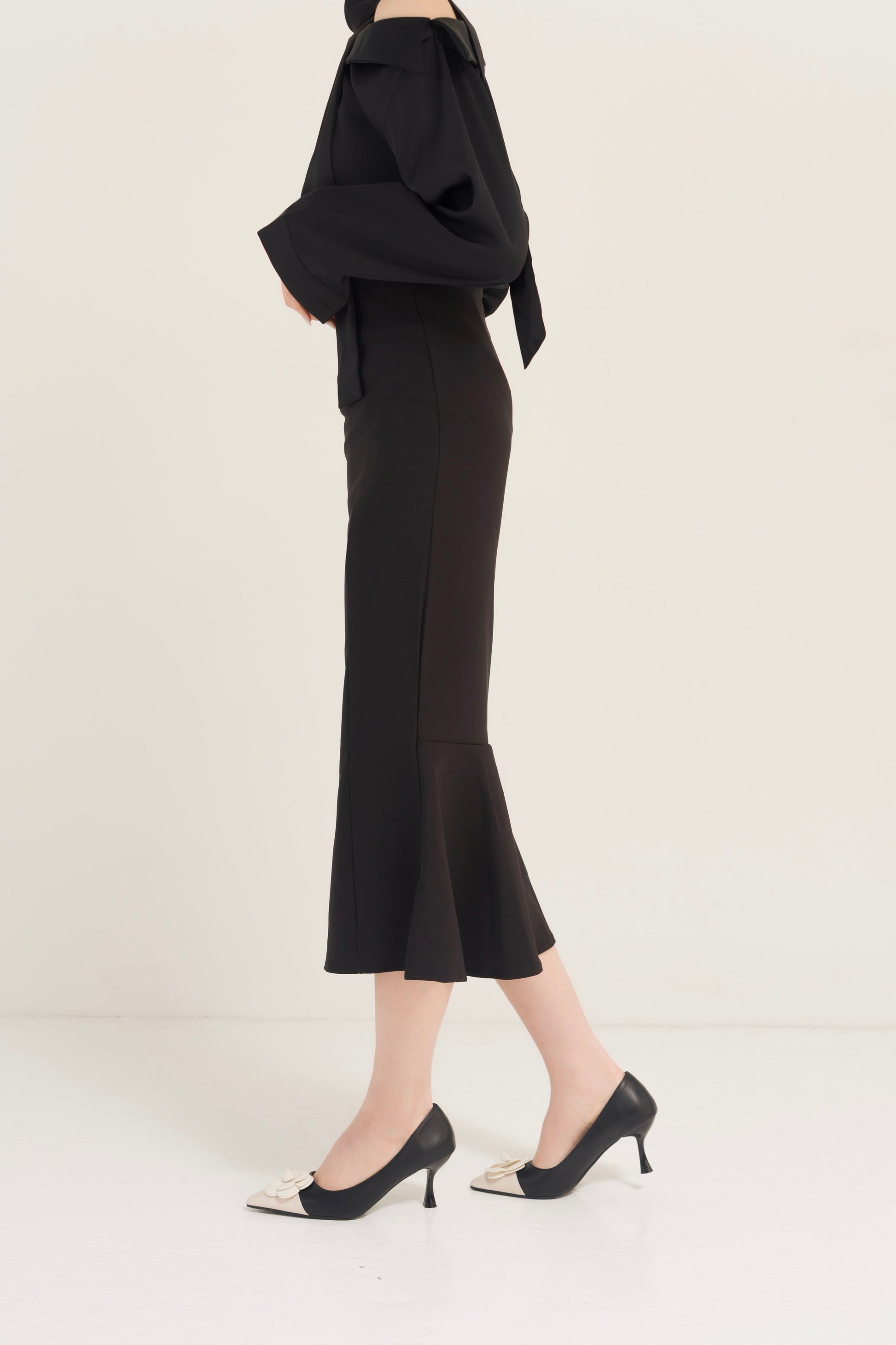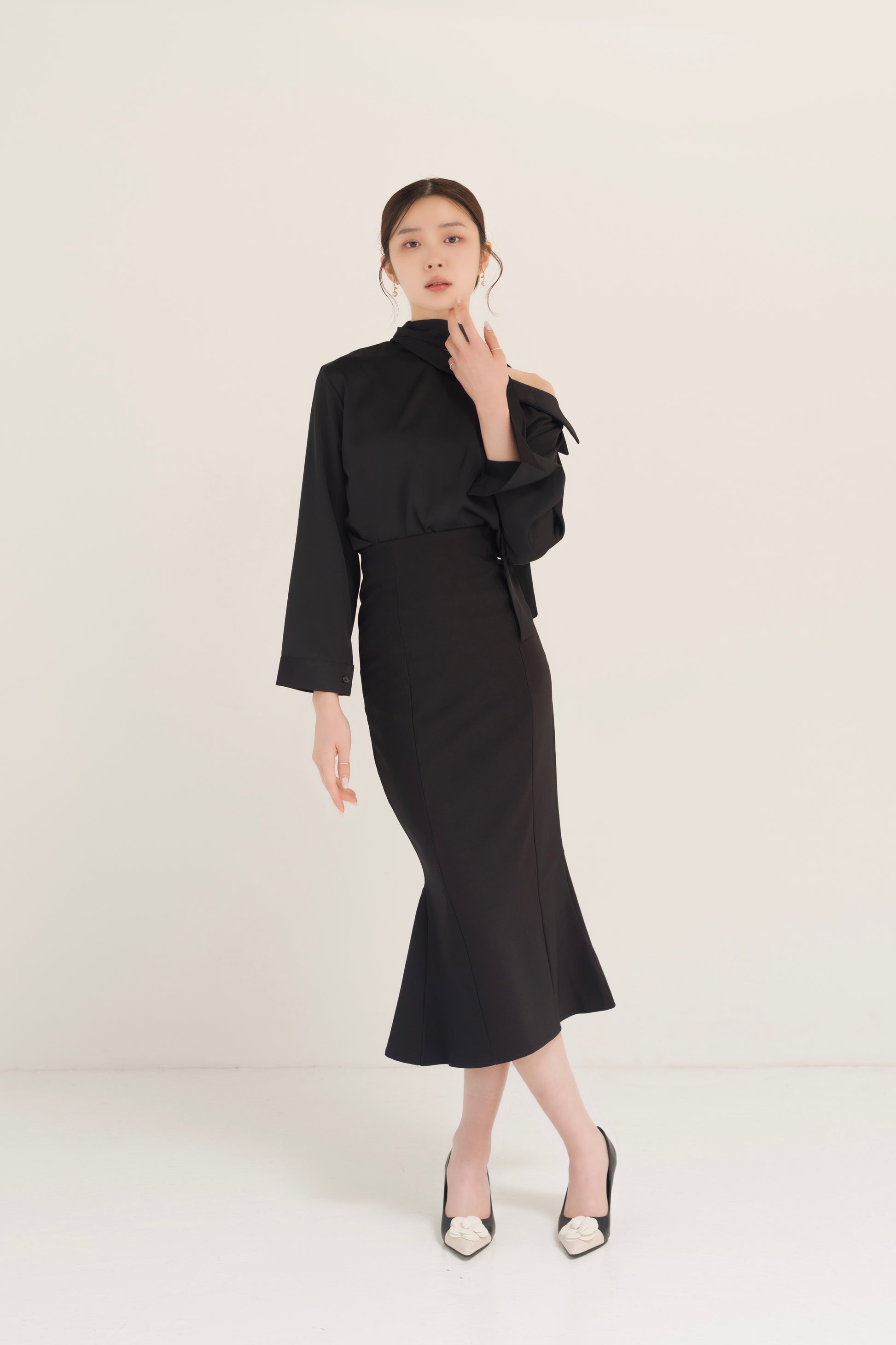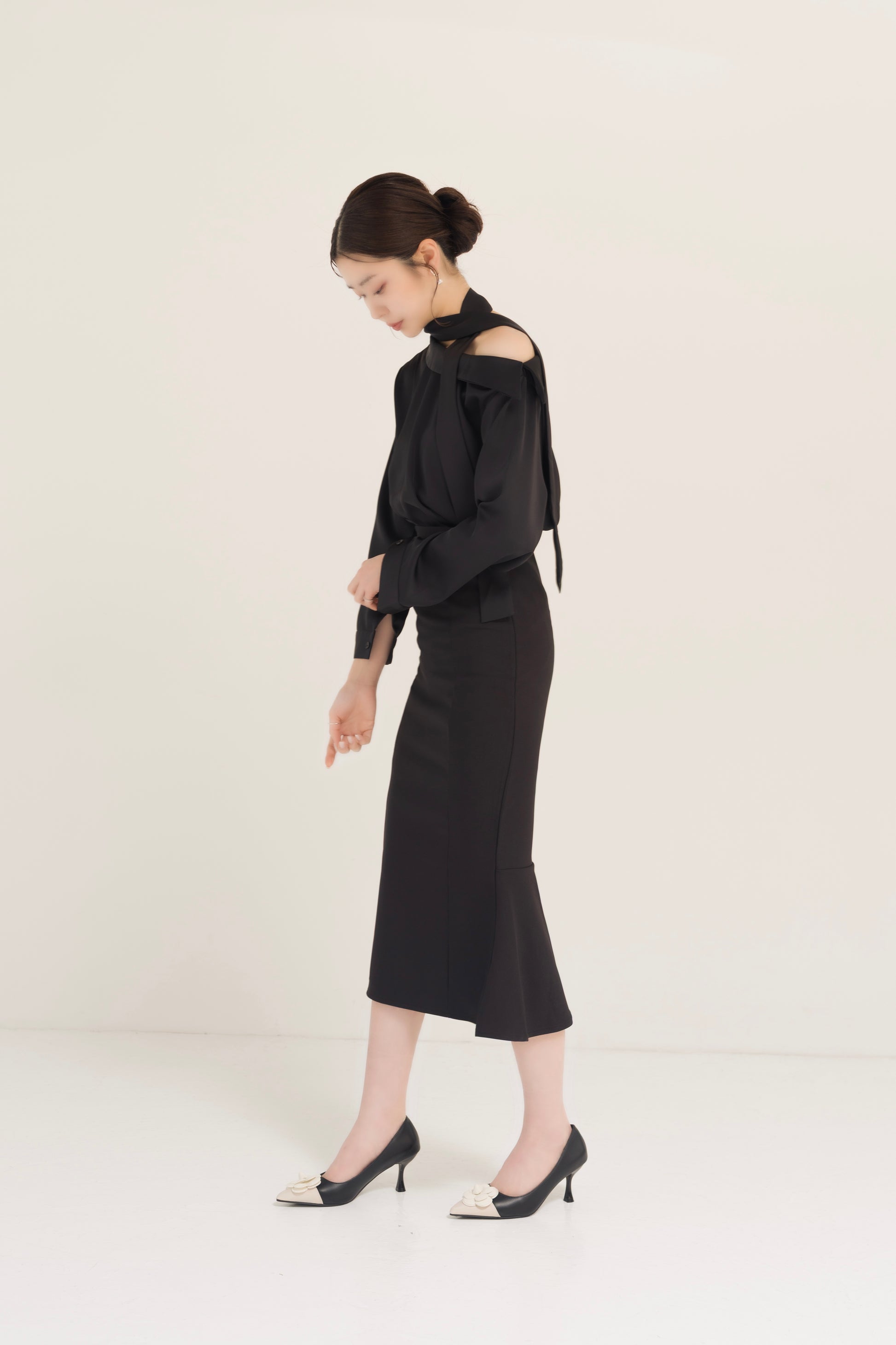 ハイウエストデザインがスタイルアップを叶える、ロング丈のマーメイドスカート。身体のラインに沿って緩やかに広がるシルエットが、女性らしい美しさを引き立てます。腰まわりはすっきりと、裾に向かって流れるようなラインを描くことで、正面はもちろん、後ろ姿まで美しく見せてくれるのが魅力。トップスを選ばず合わせやすく、きれいめにもカジュアルにも馴染む一着。動くたびに上品な余韻を残す、大人のためのマーメイドスカートです。