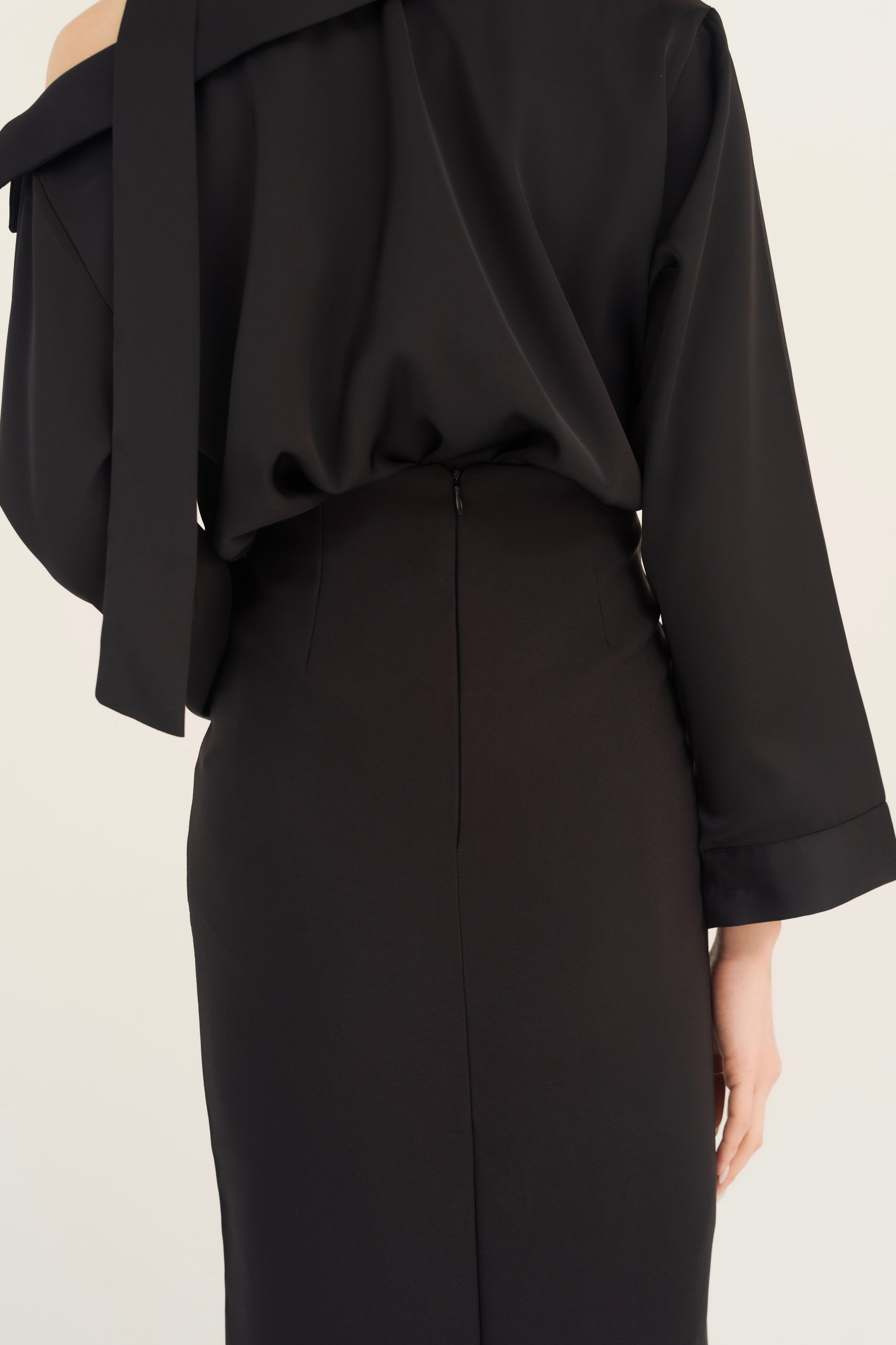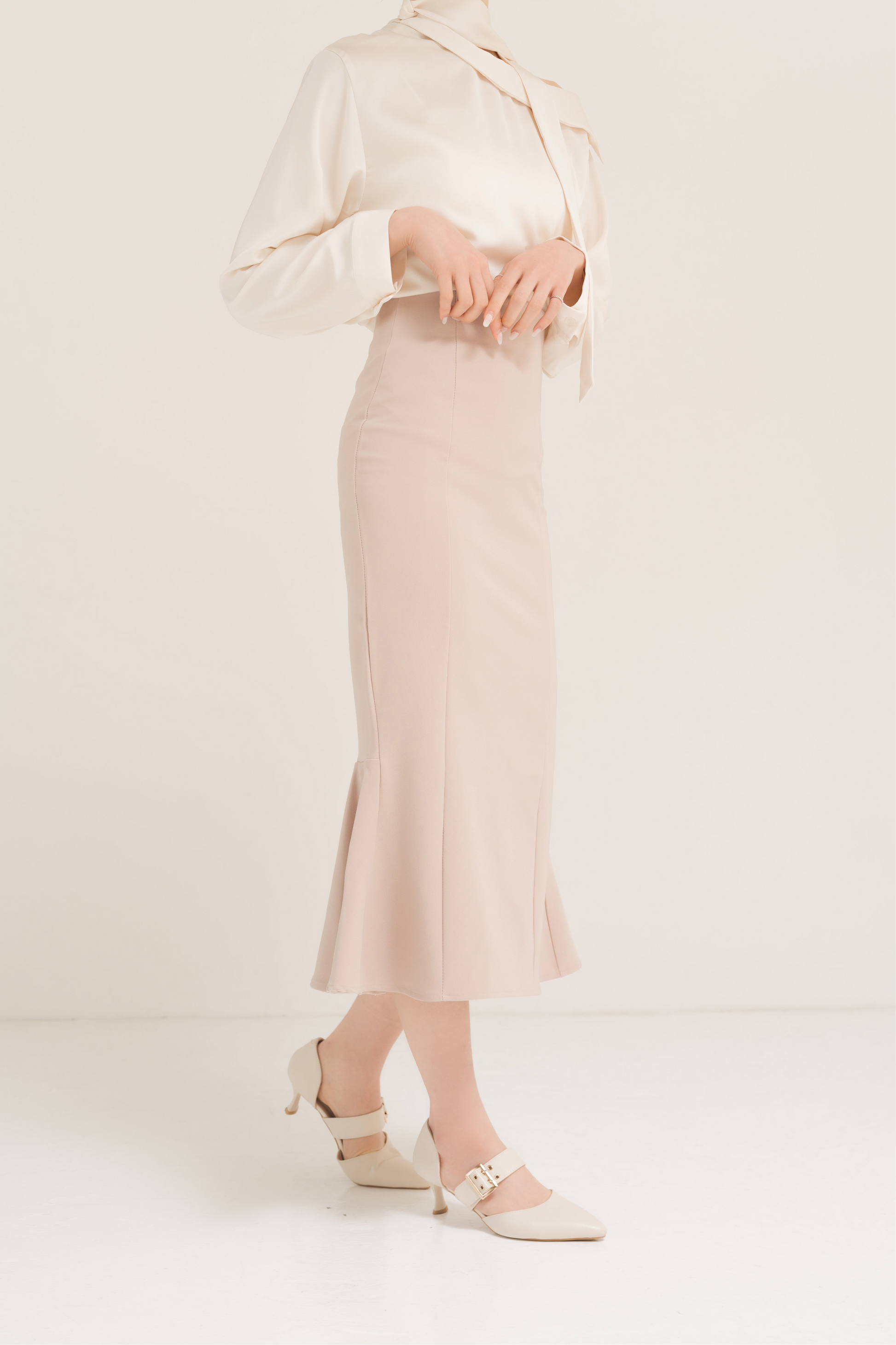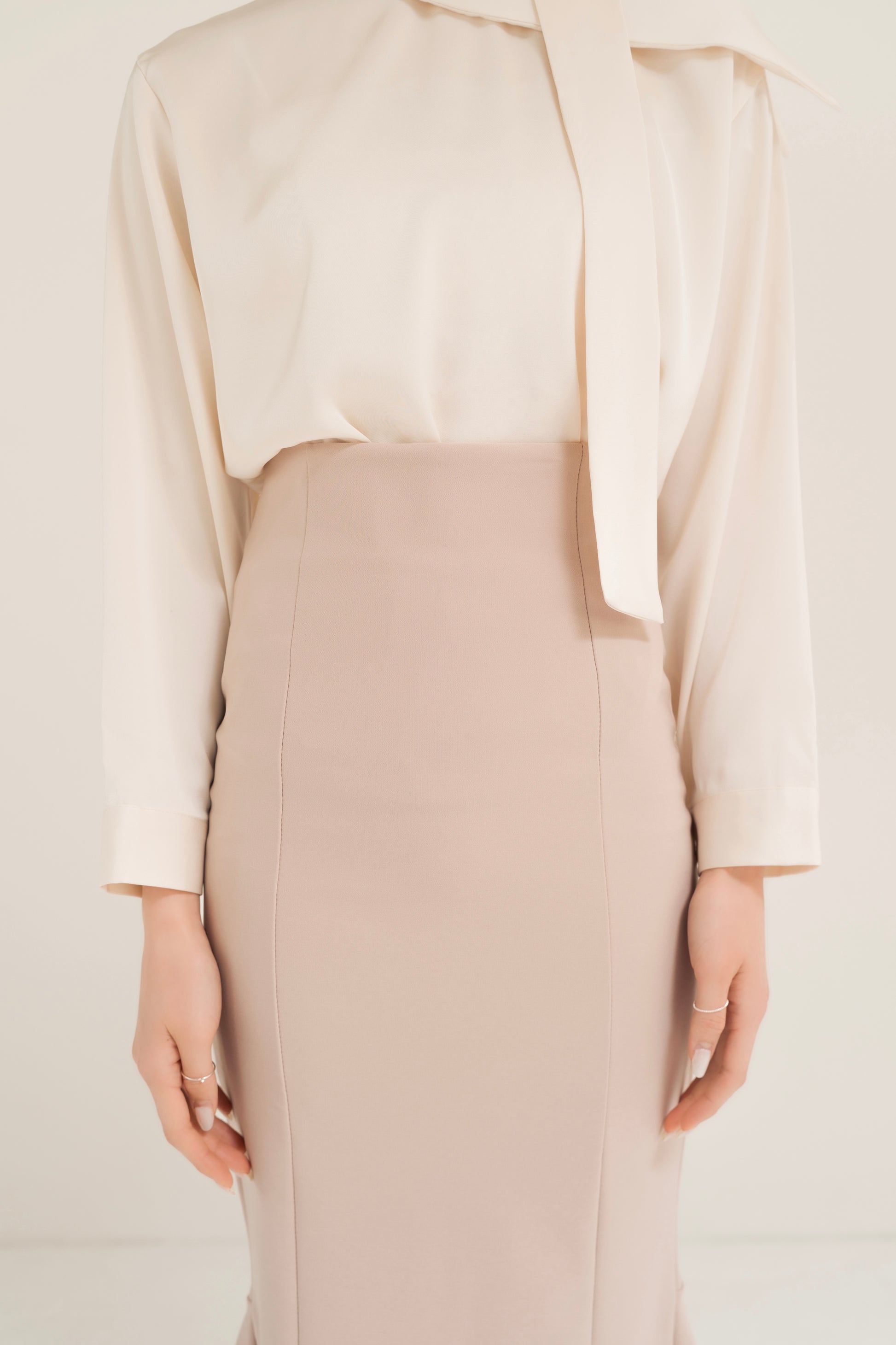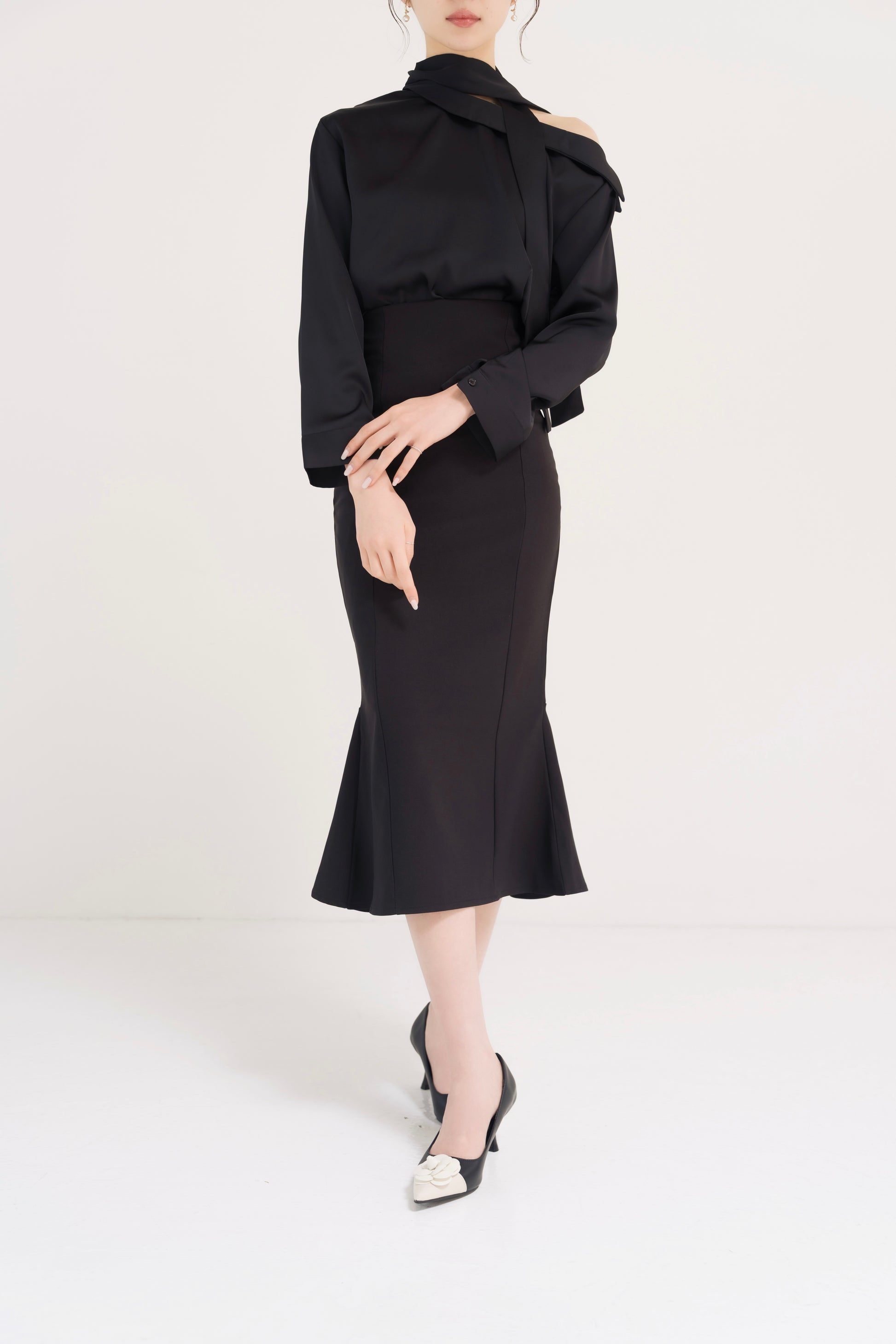 ハイウエストデザインがスタイルアップを叶える、ロング丈のマーメイドスカート。身体のラインに沿って緩やかに広がるシルエットが、女性らしい美しさを引き立てます。腰まわりはすっきりと、裾に向かって流れるようなラインを描くことで、正面はもちろん、後ろ姿まで美しく見せてくれるのが魅力。トップスを選ばず合わせやすく、きれいめにもカジュアルにも馴染む一着。動くたびに上品な余韻を残す、大人のためのマーメイドスカートです。