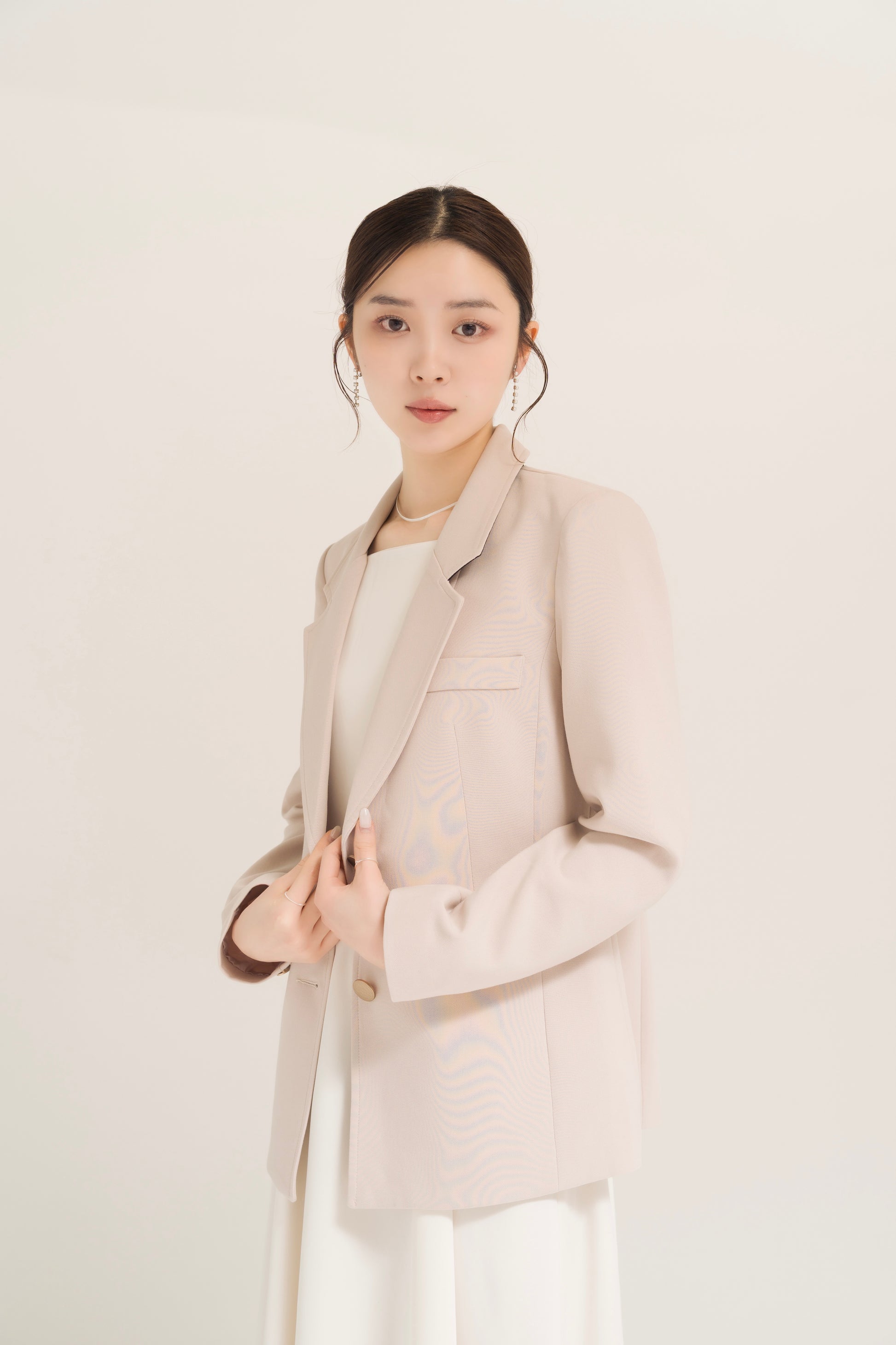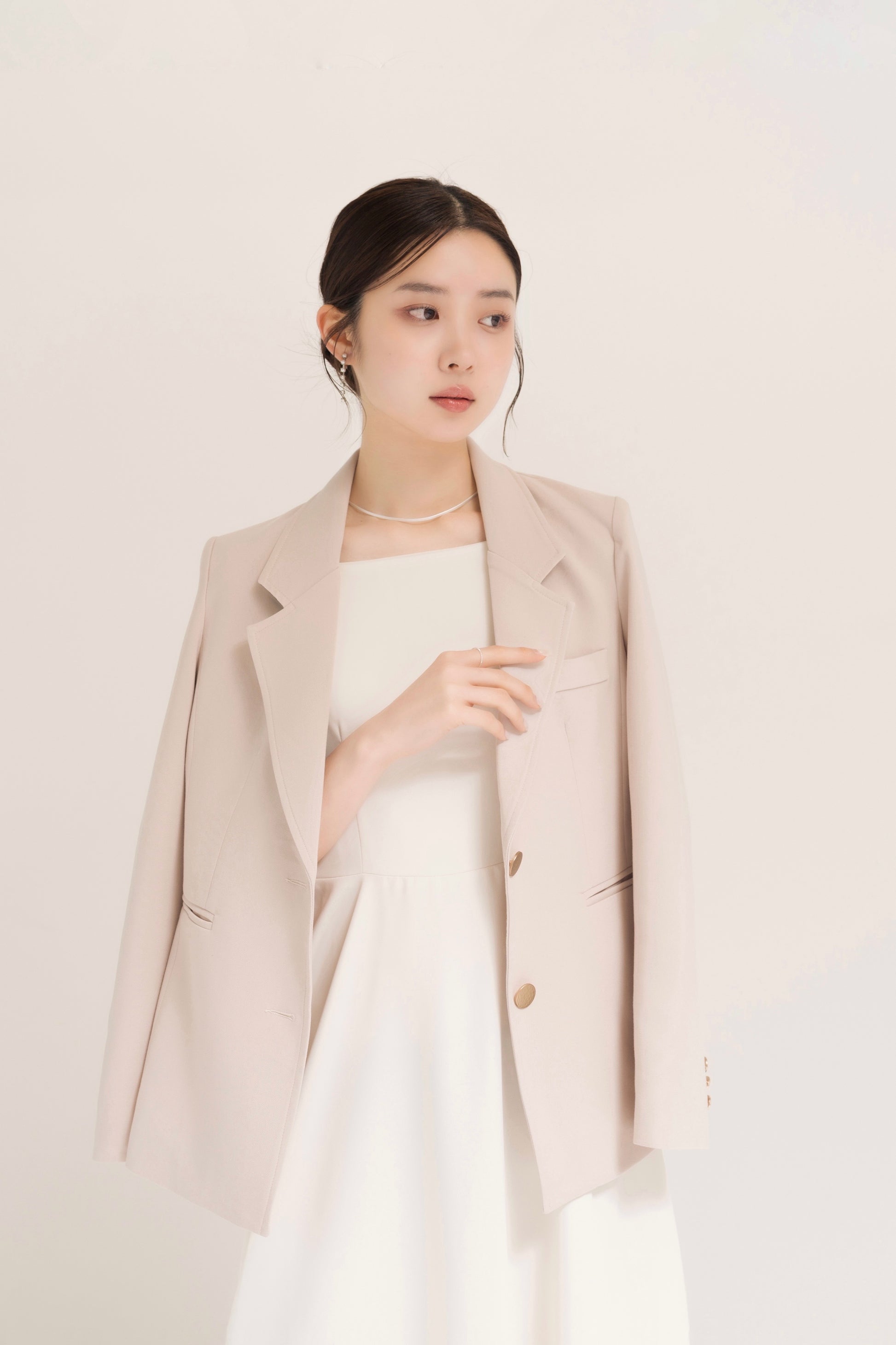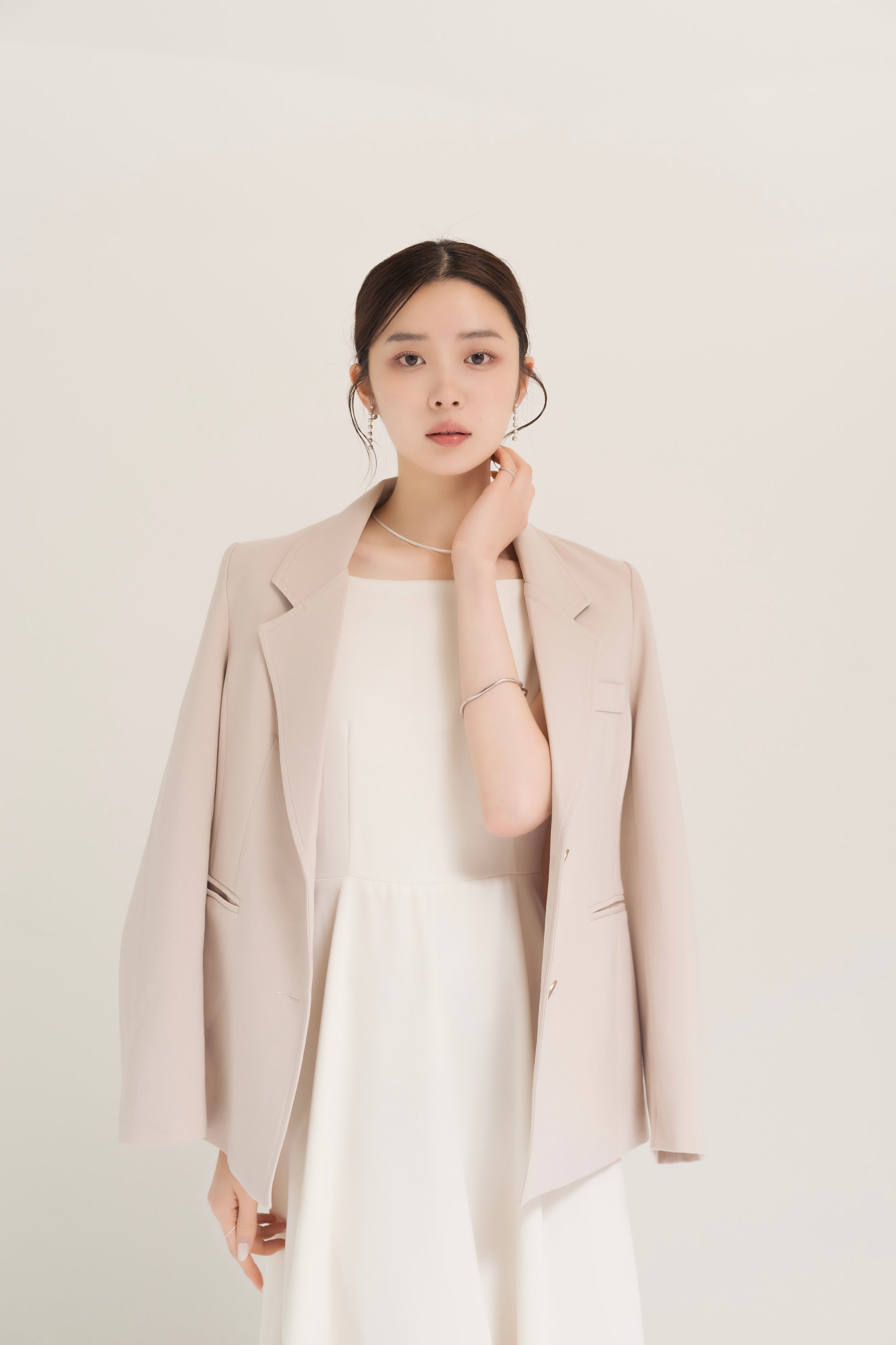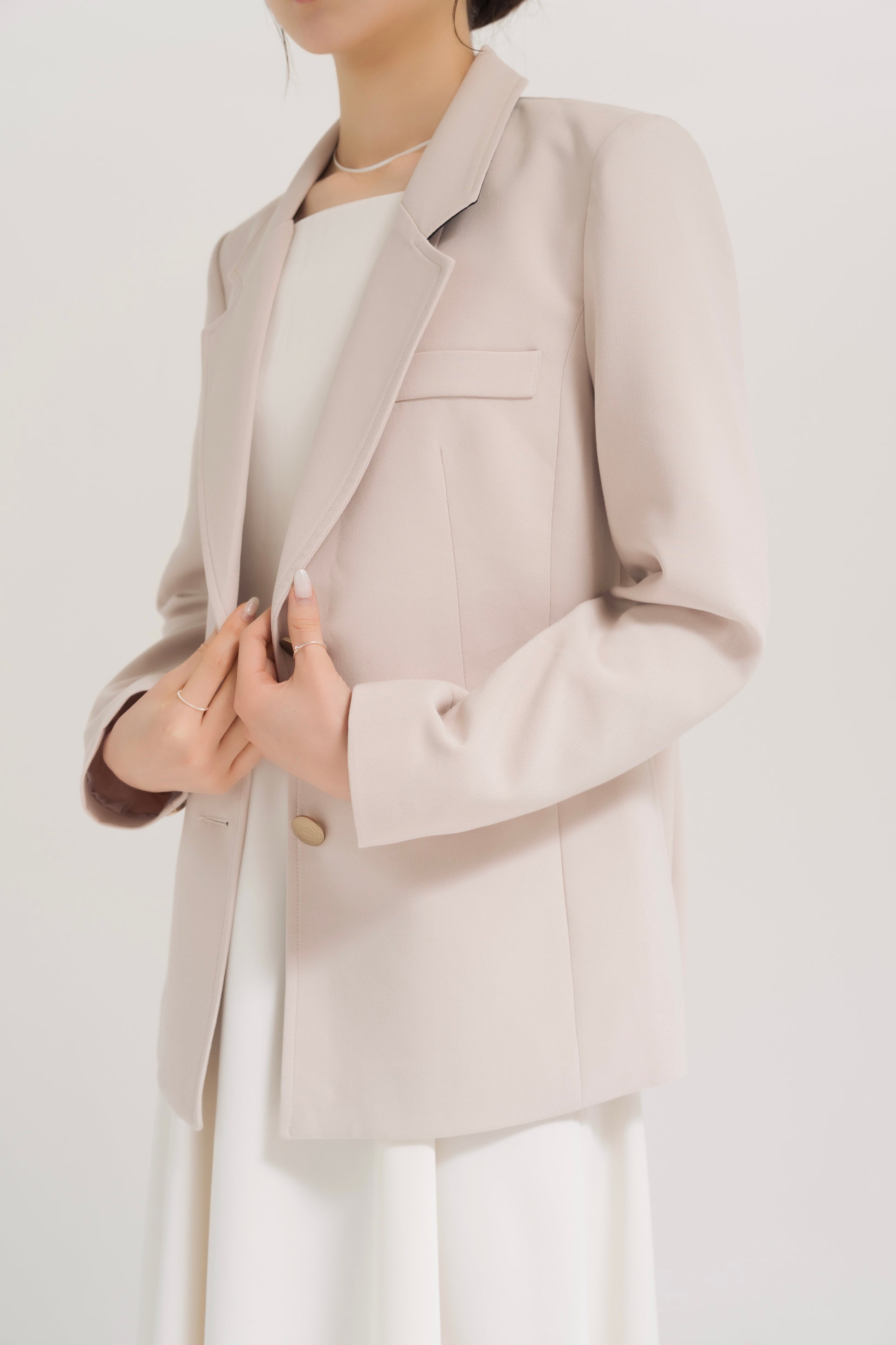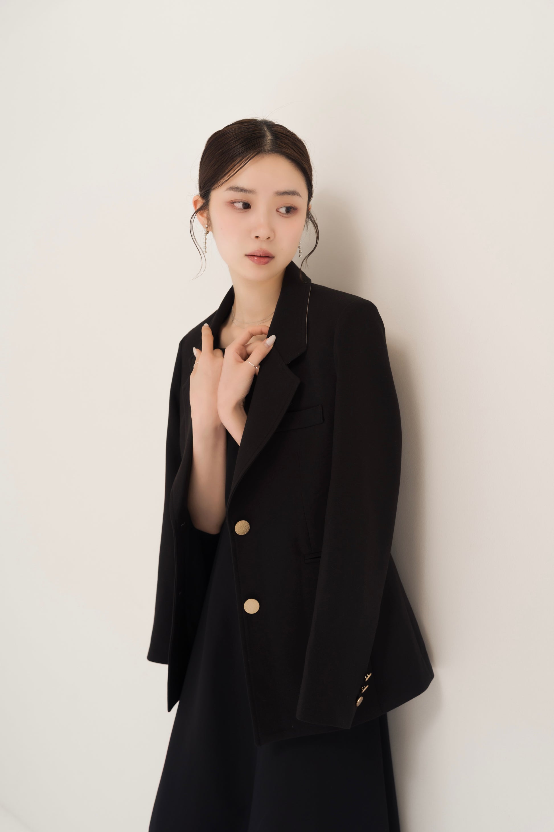 ワードローブに一着は揃えておきたい、定番のテーラードジャケット。洗練されたシルエットに、さりげなく映えるゴールドボタンが上品なアクセントを添えます。羽織るだけでスタイリングが引き締まり、きちんと感のある印象に。デニムと合わせたカジュアルな着こなしから、ワンピースやスカートと合わせたきれいめスタイルまで、幅広く活躍します。オン・オフ問わず使いやすく、季節の変わり目にも重宝する一着。