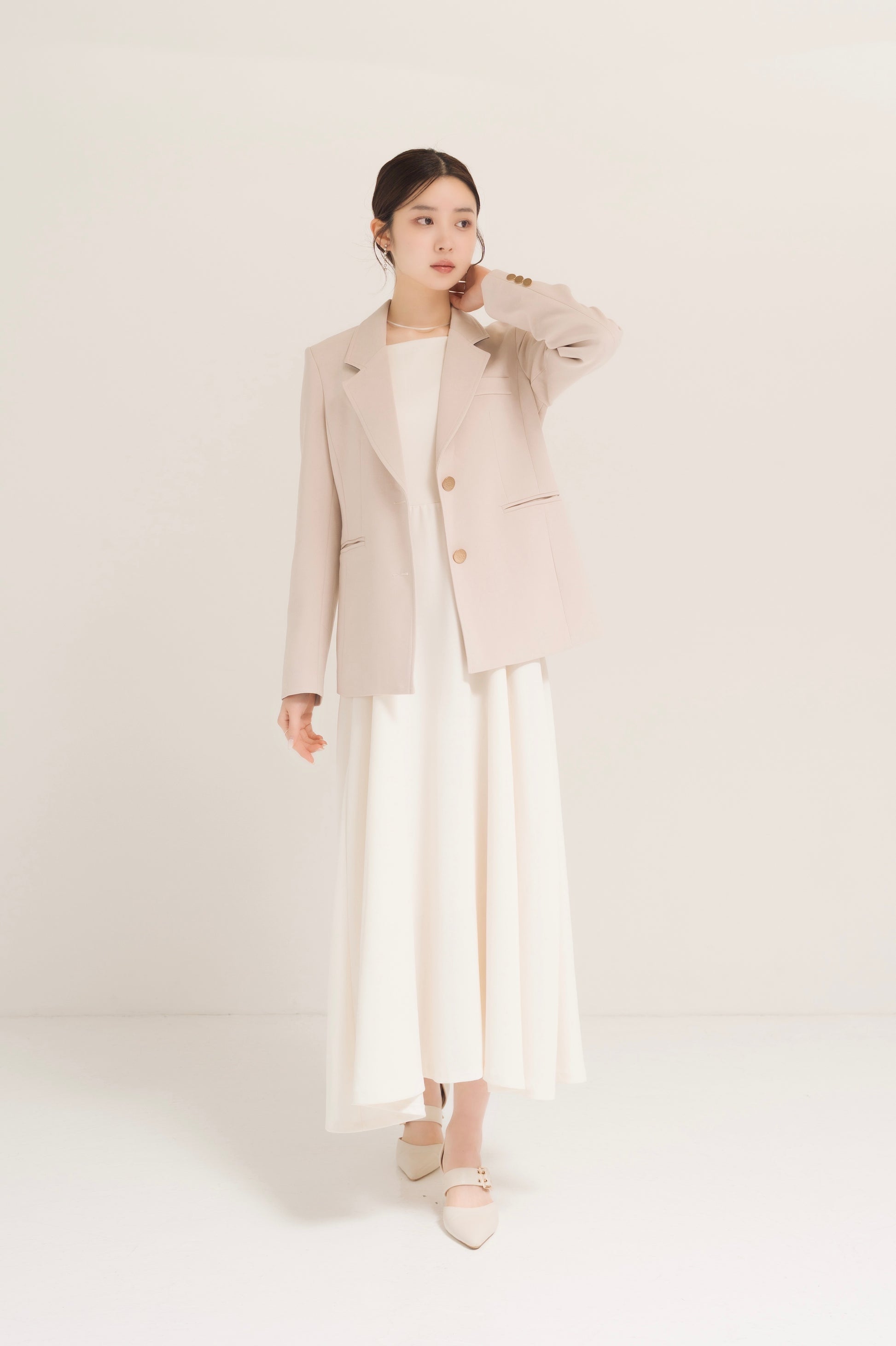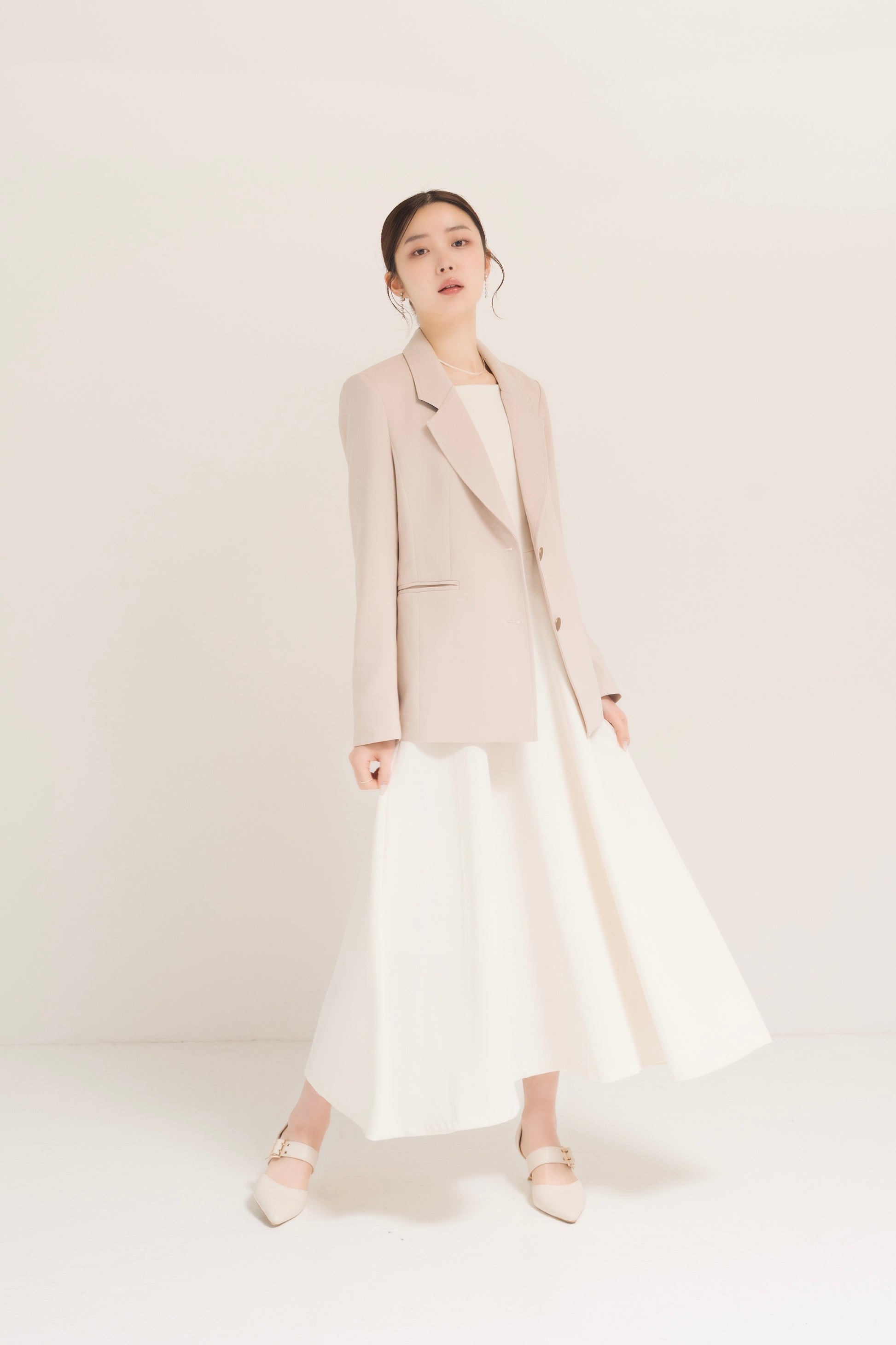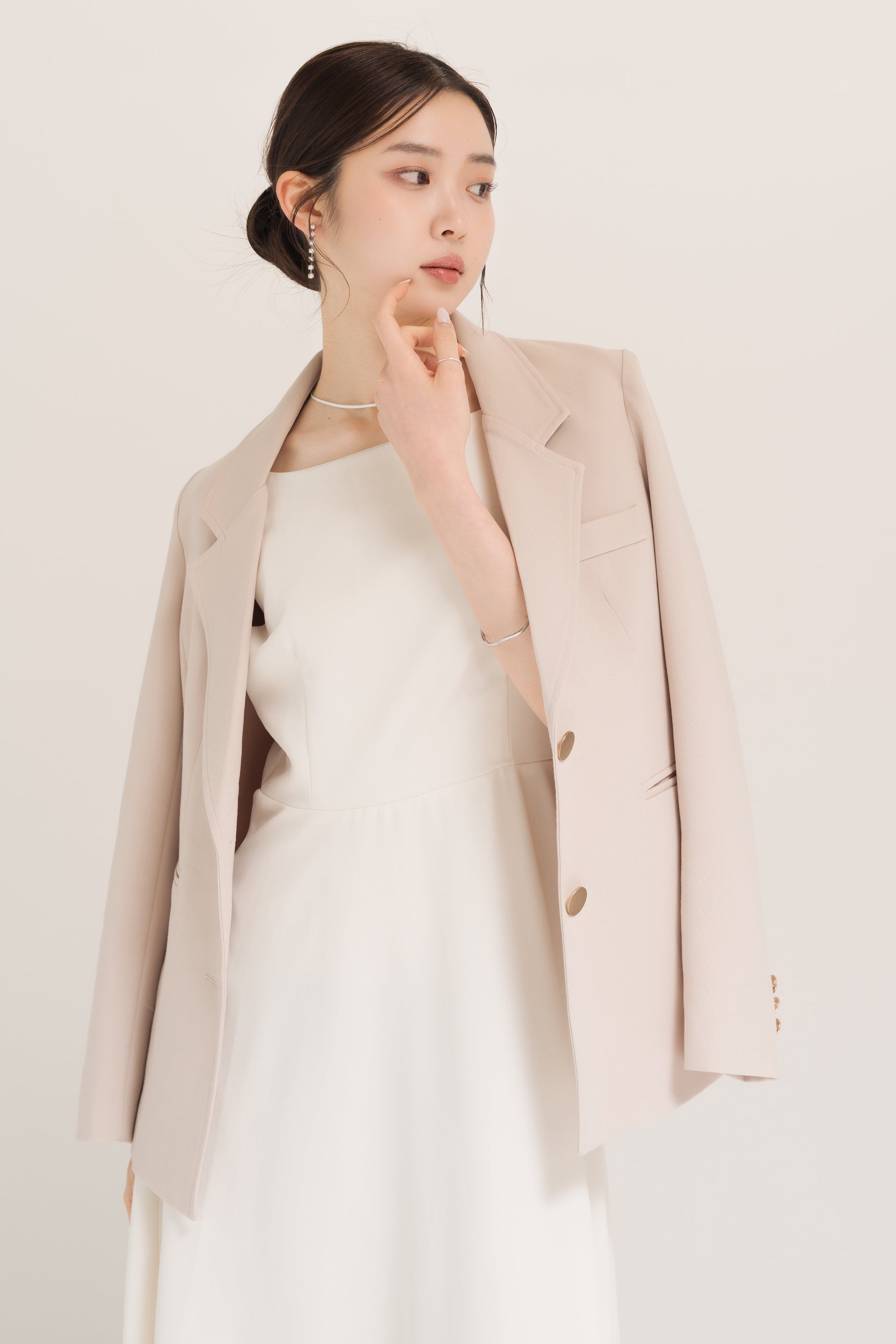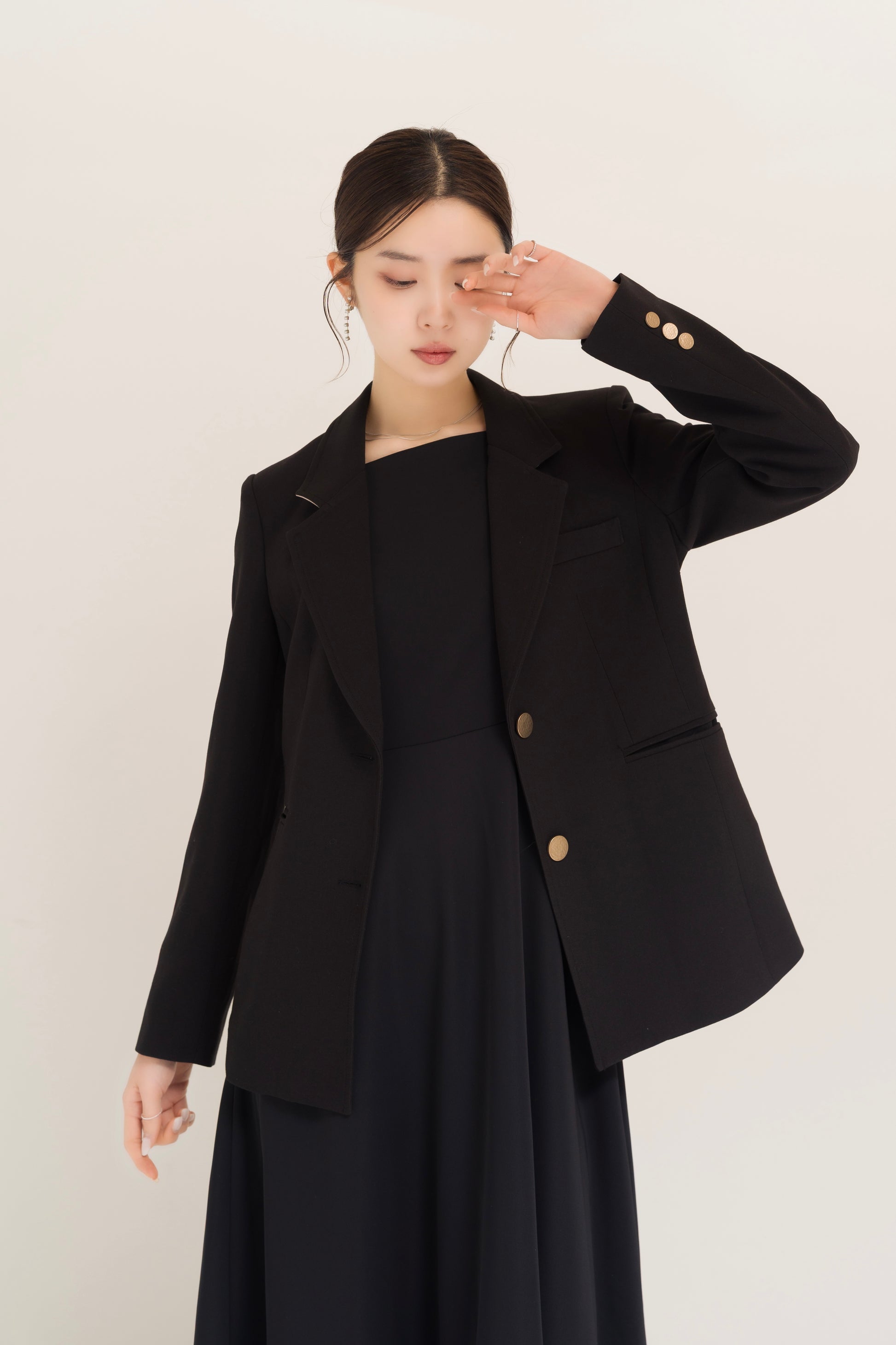ワードローブに一着は揃えておきたい、定番のテーラードジャケット。洗練されたシルエットに、さりげなく映えるゴールドボタンが上品なアクセントを添えます。羽織るだけでスタイリングが引き締まり、きちんと感のある印象に。デニムと合わせたカジュアルな着こなしから、ワンピースやスカートと合わせたきれいめスタイルまで、幅広く活躍します。オン・オフ問わず使いやすく、季節の変わり目にも重宝する一着。