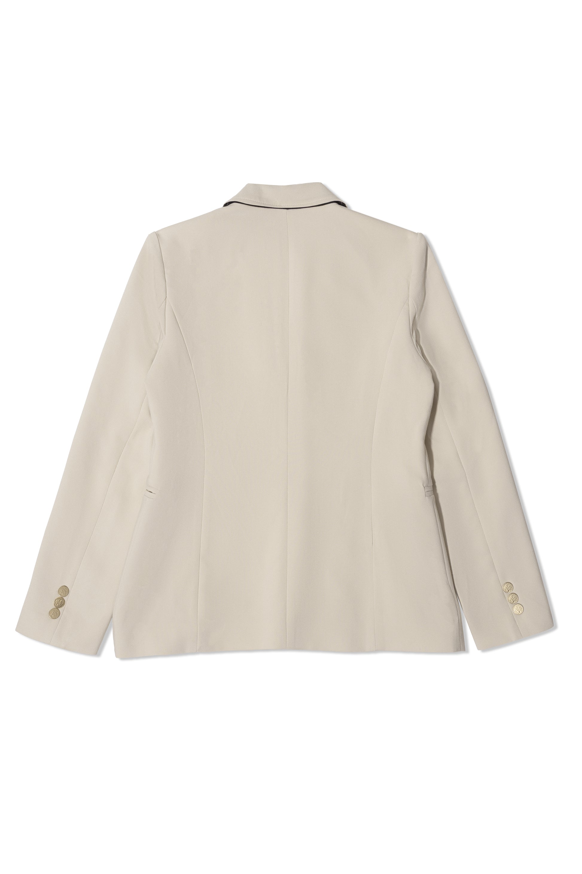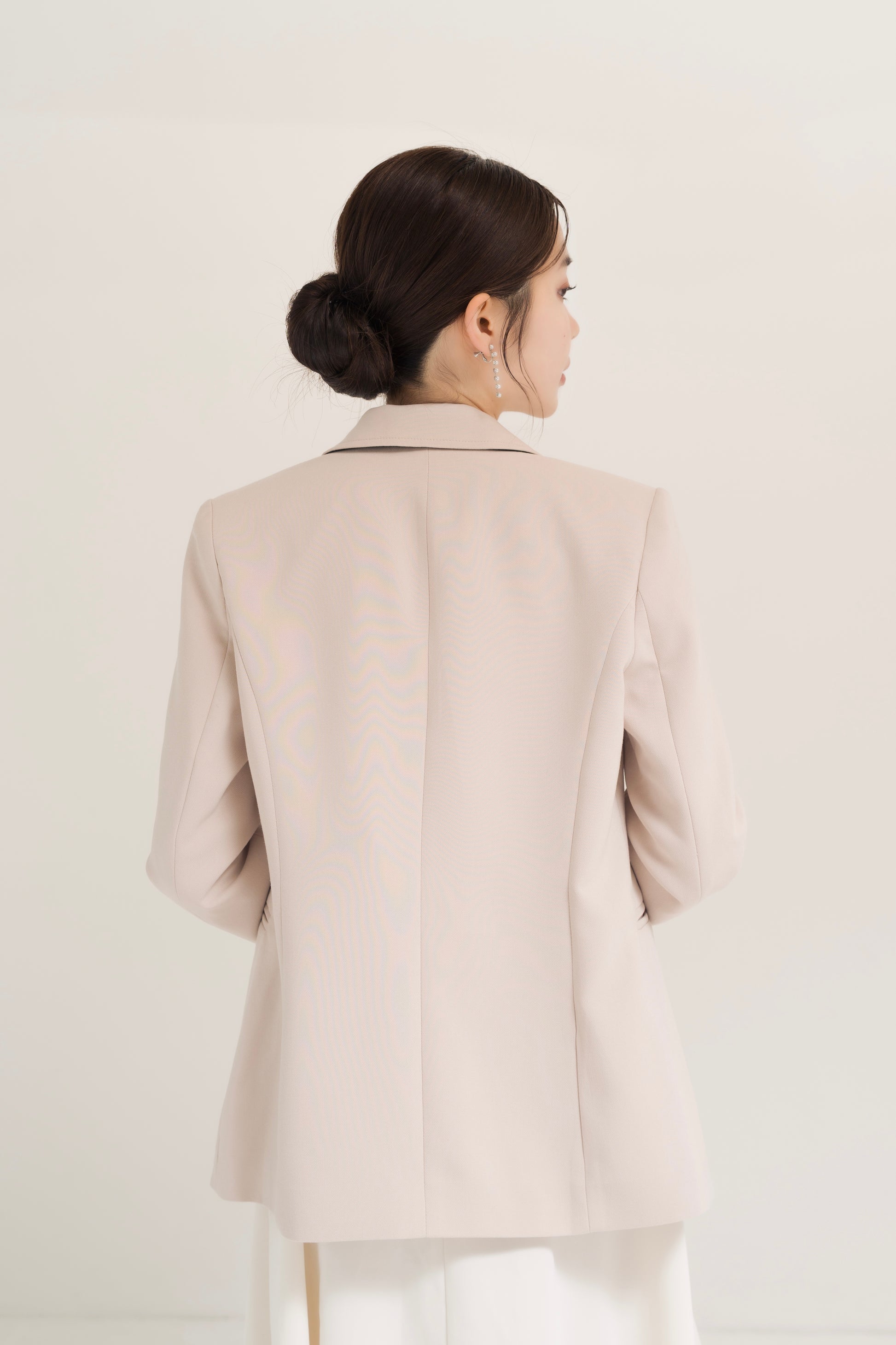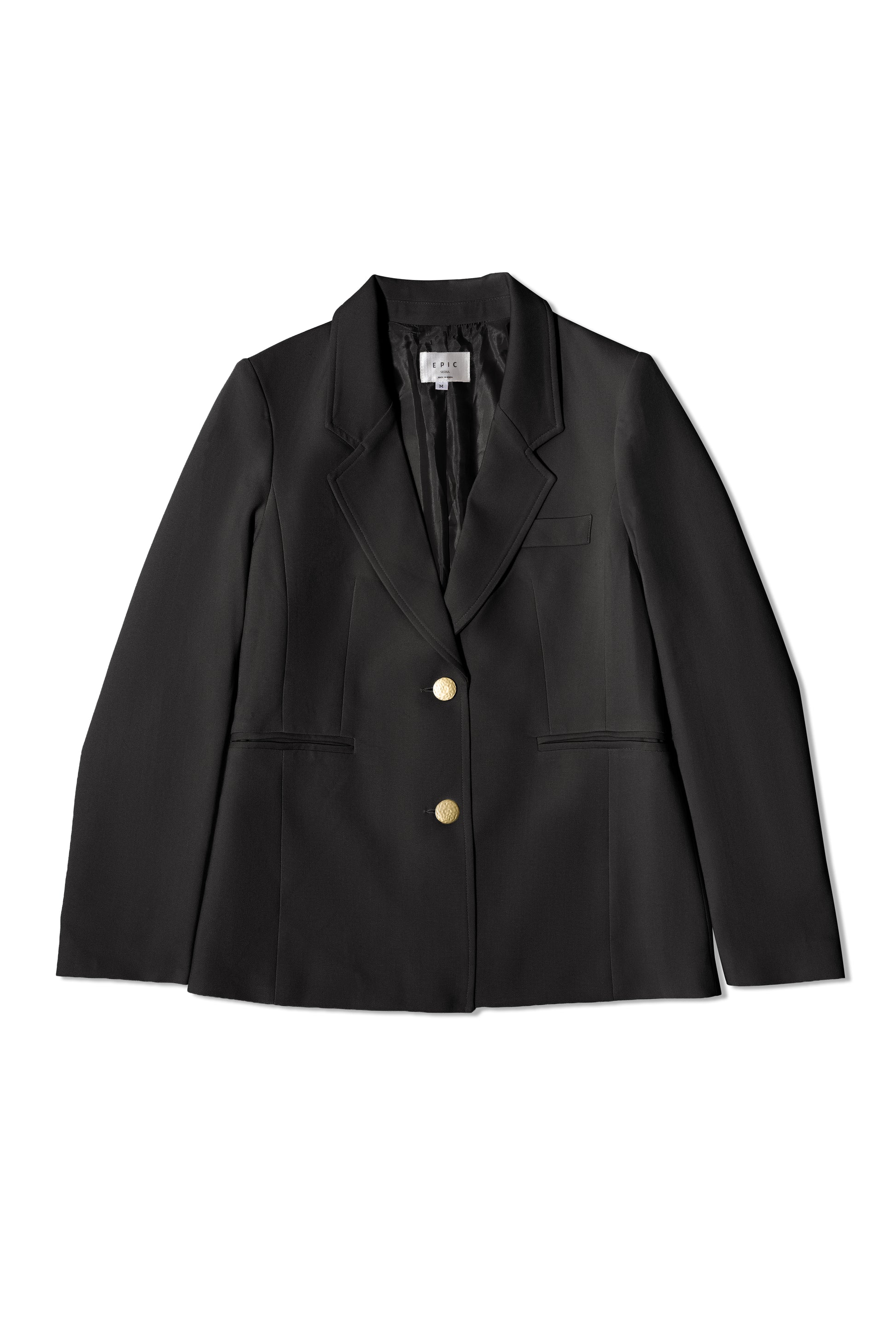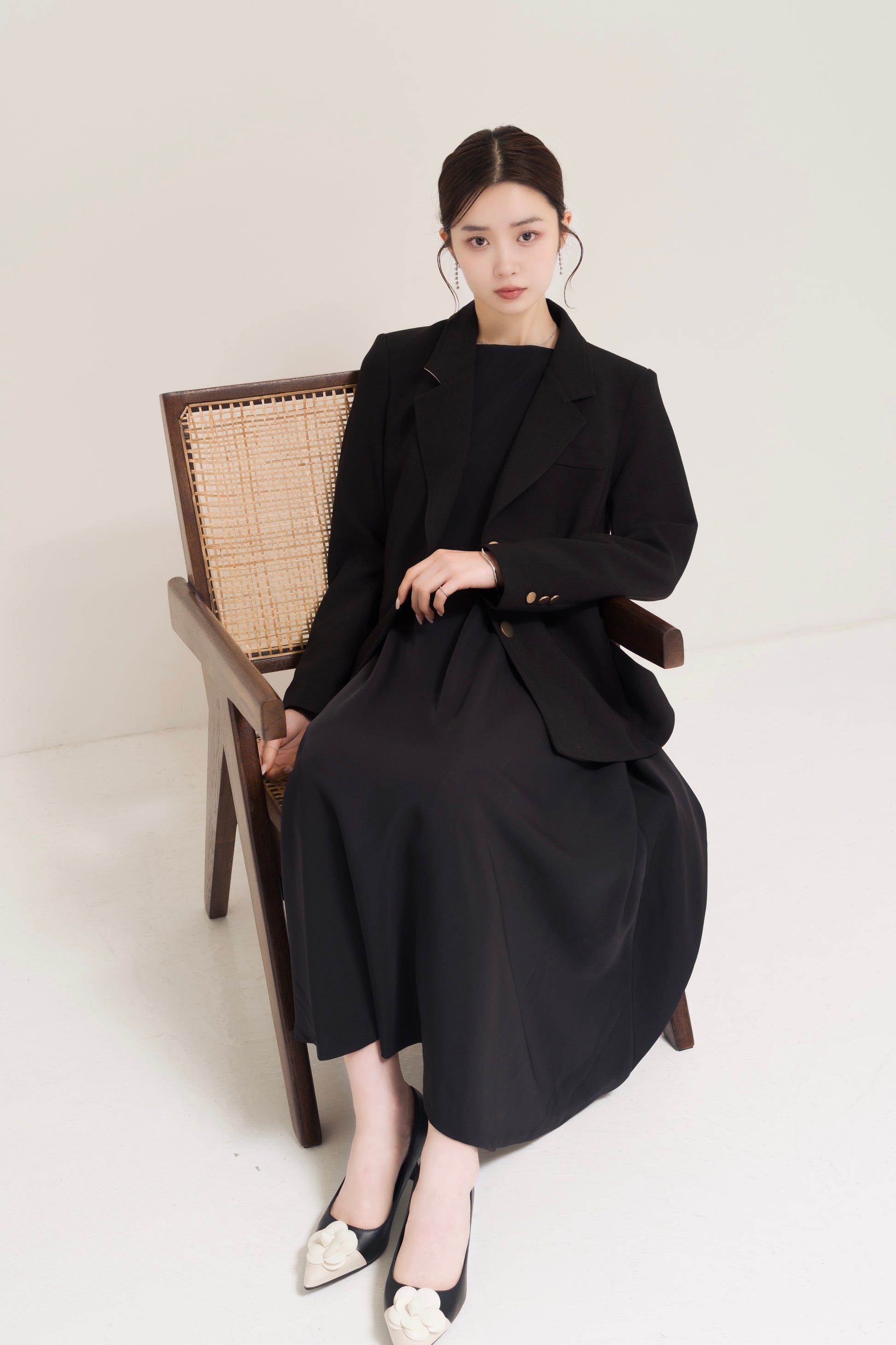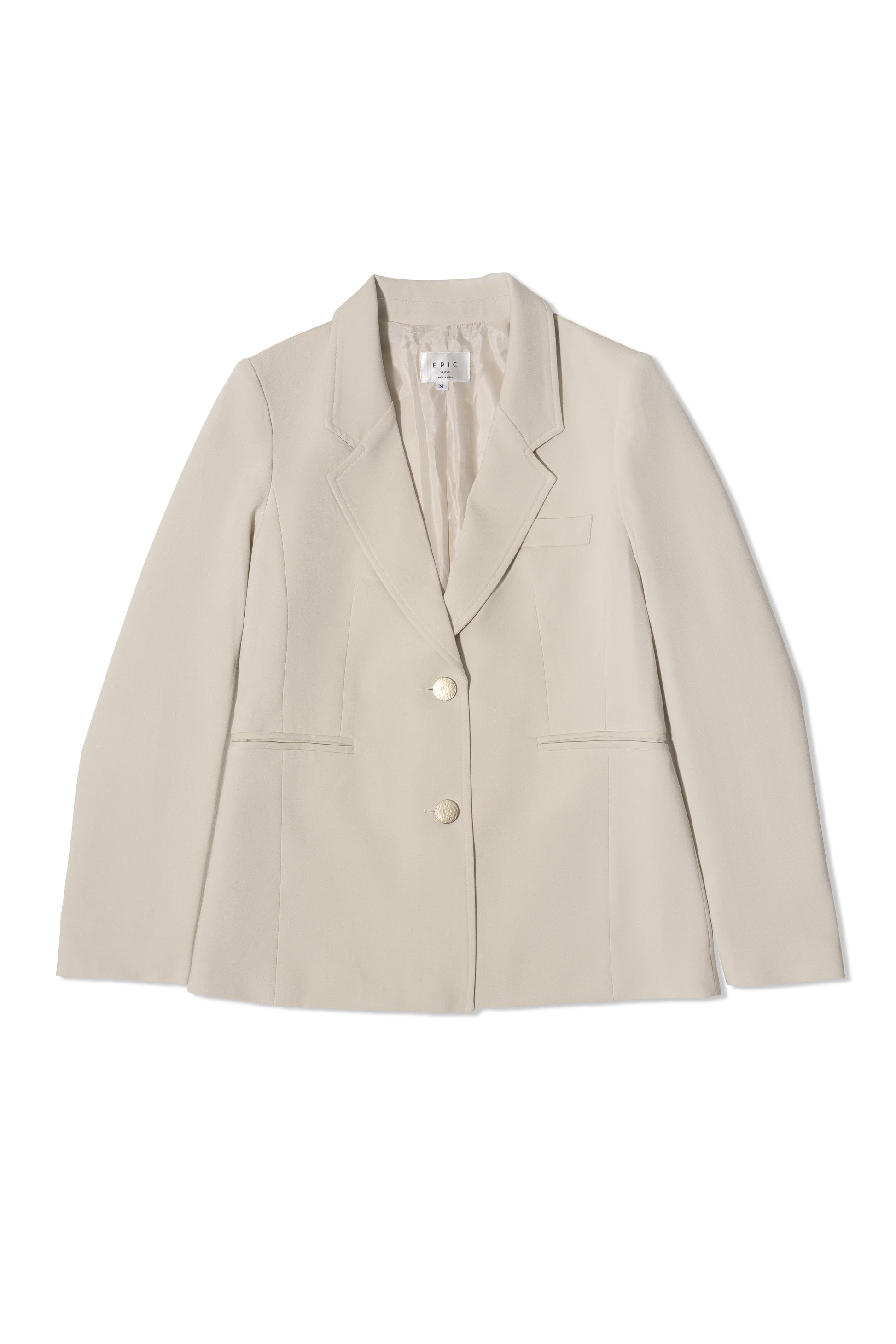 ワードローブに一着は揃えておきたい、定番のテーラードジャケット。洗練されたシルエットに、さりげなく映えるゴールドボタンが上品なアクセントを添えます。羽織るだけでスタイリングが引き締まり、きちんと感のある印象に。デニムと合わせたカジュアルな着こなしから、ワンピースやスカートと合わせたきれいめスタイルまで、幅広く活躍します。オン・オフ問わず使いやすく、季節の変わり目にも重宝する一着。
