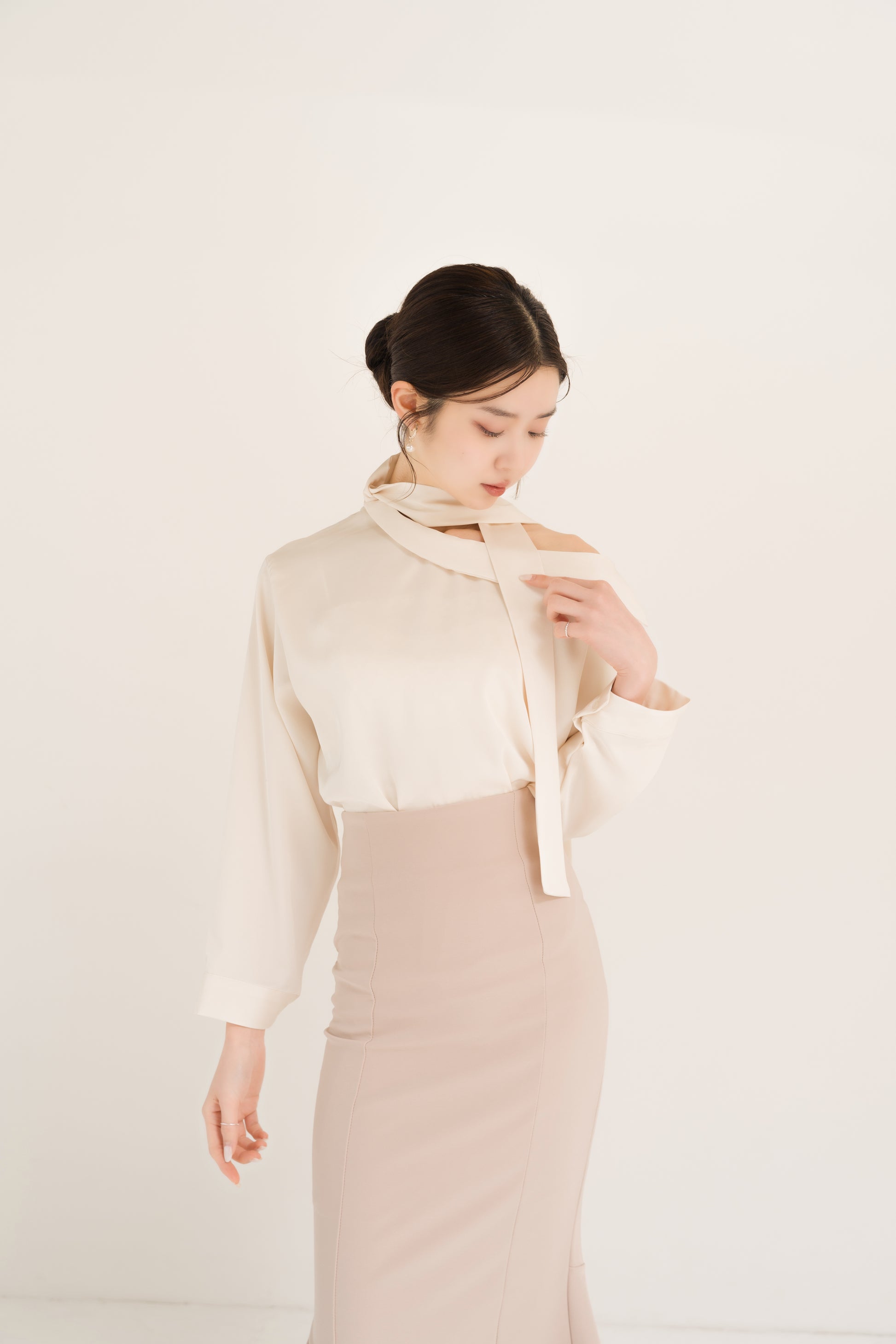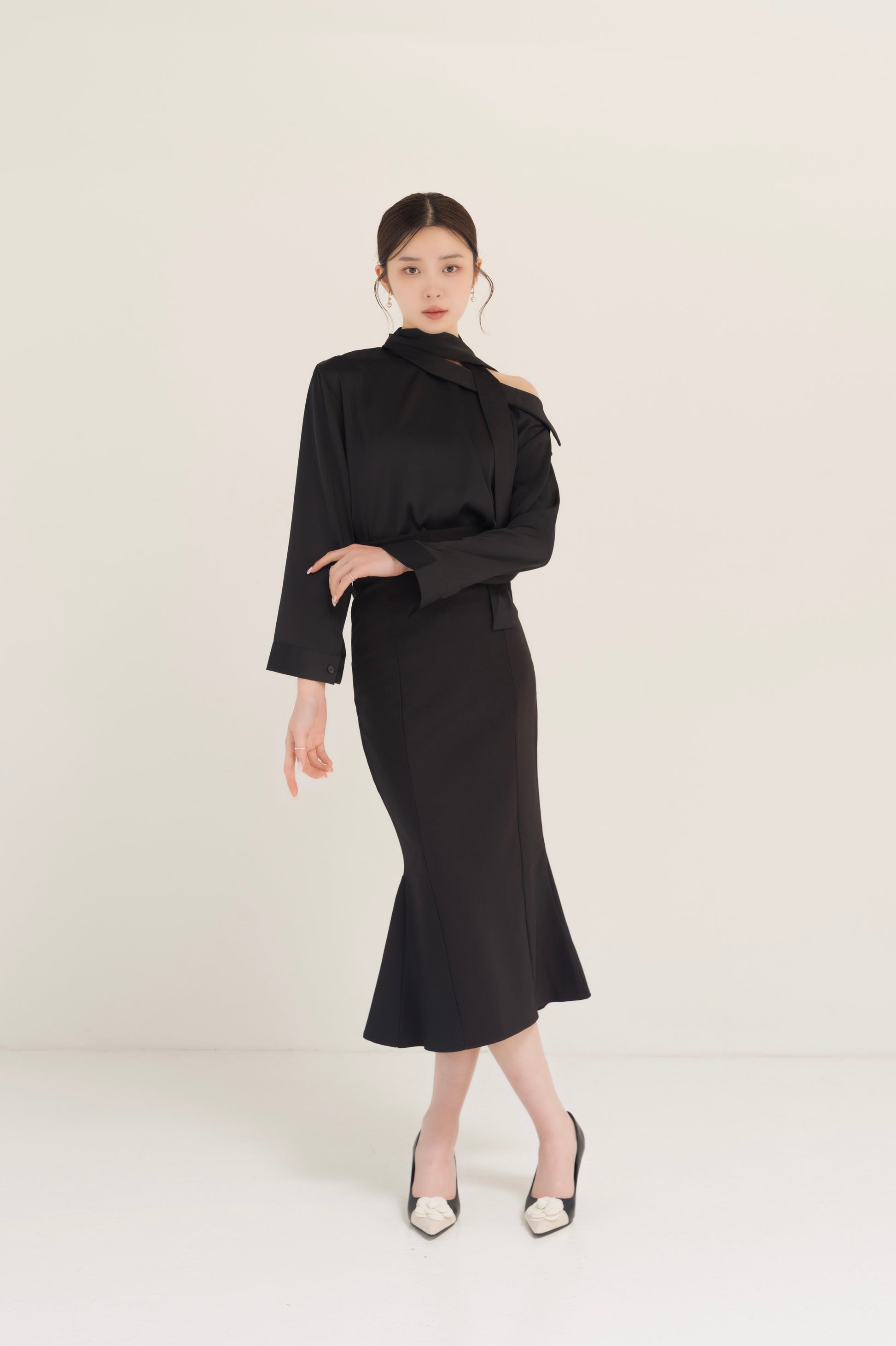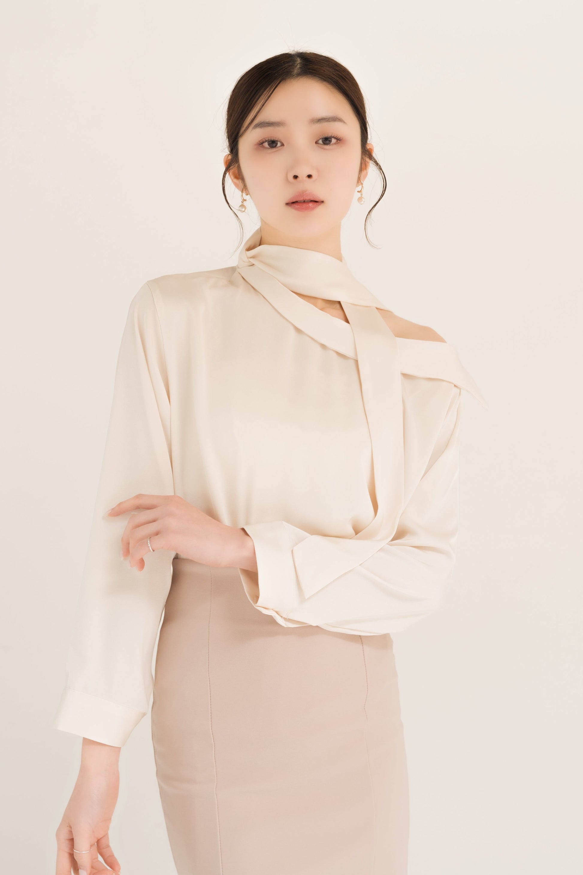 サテンアシンメトリータイブラウス