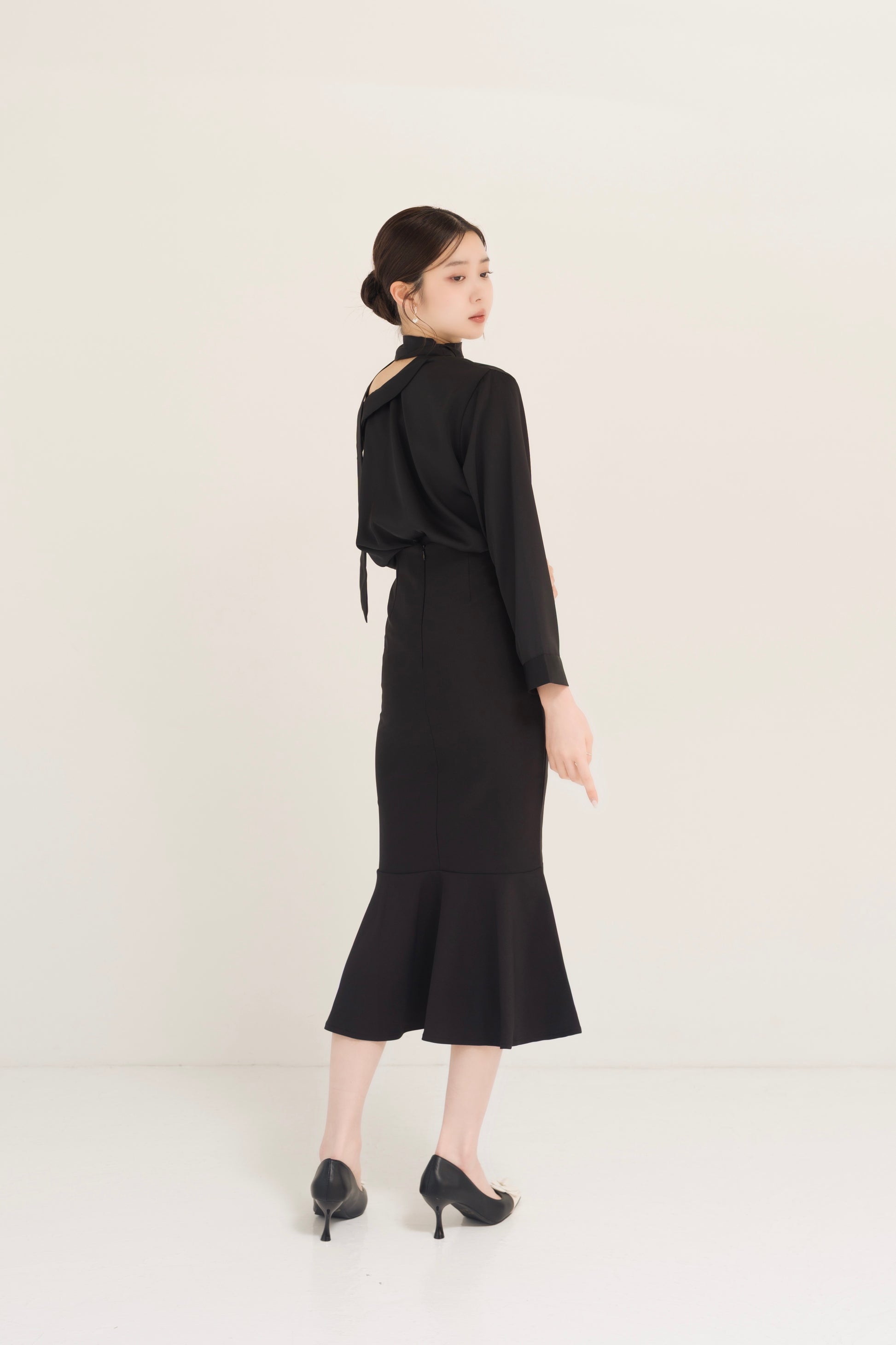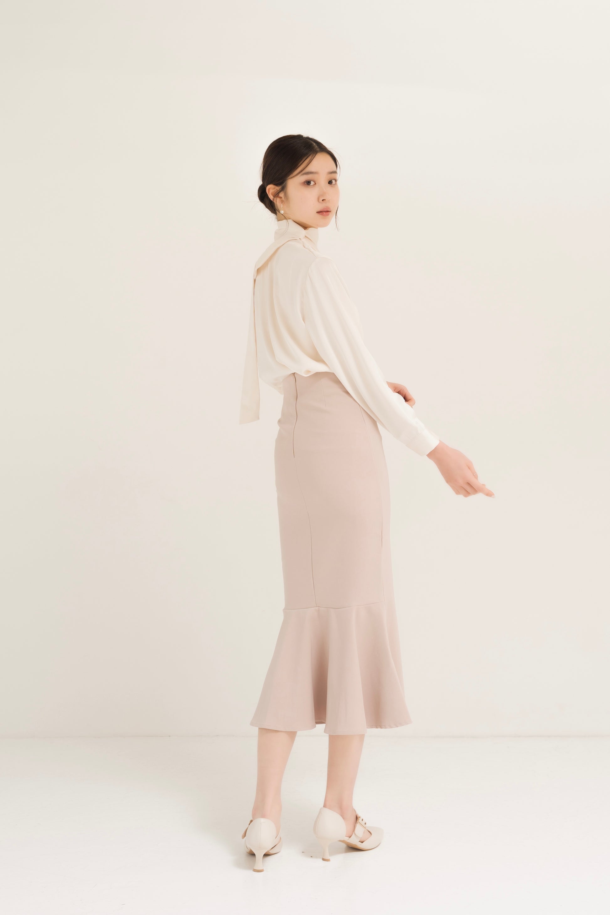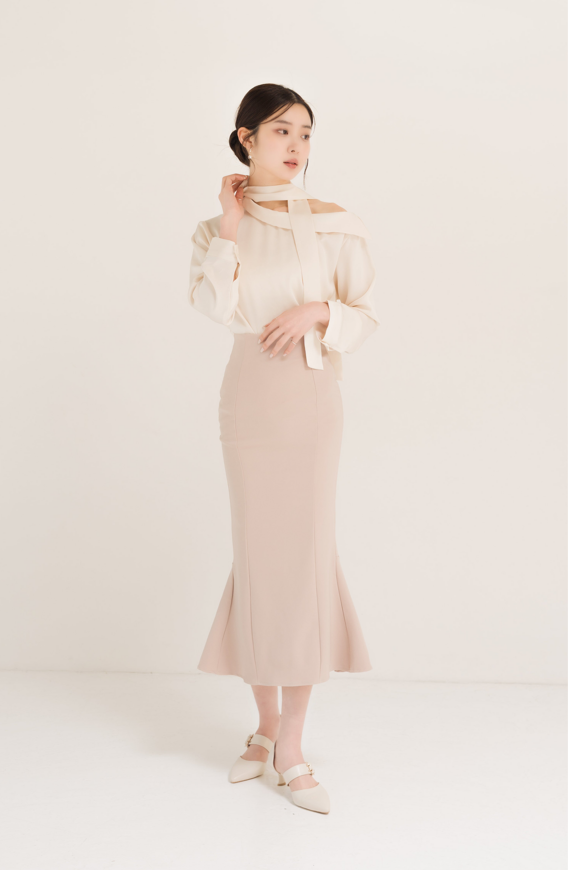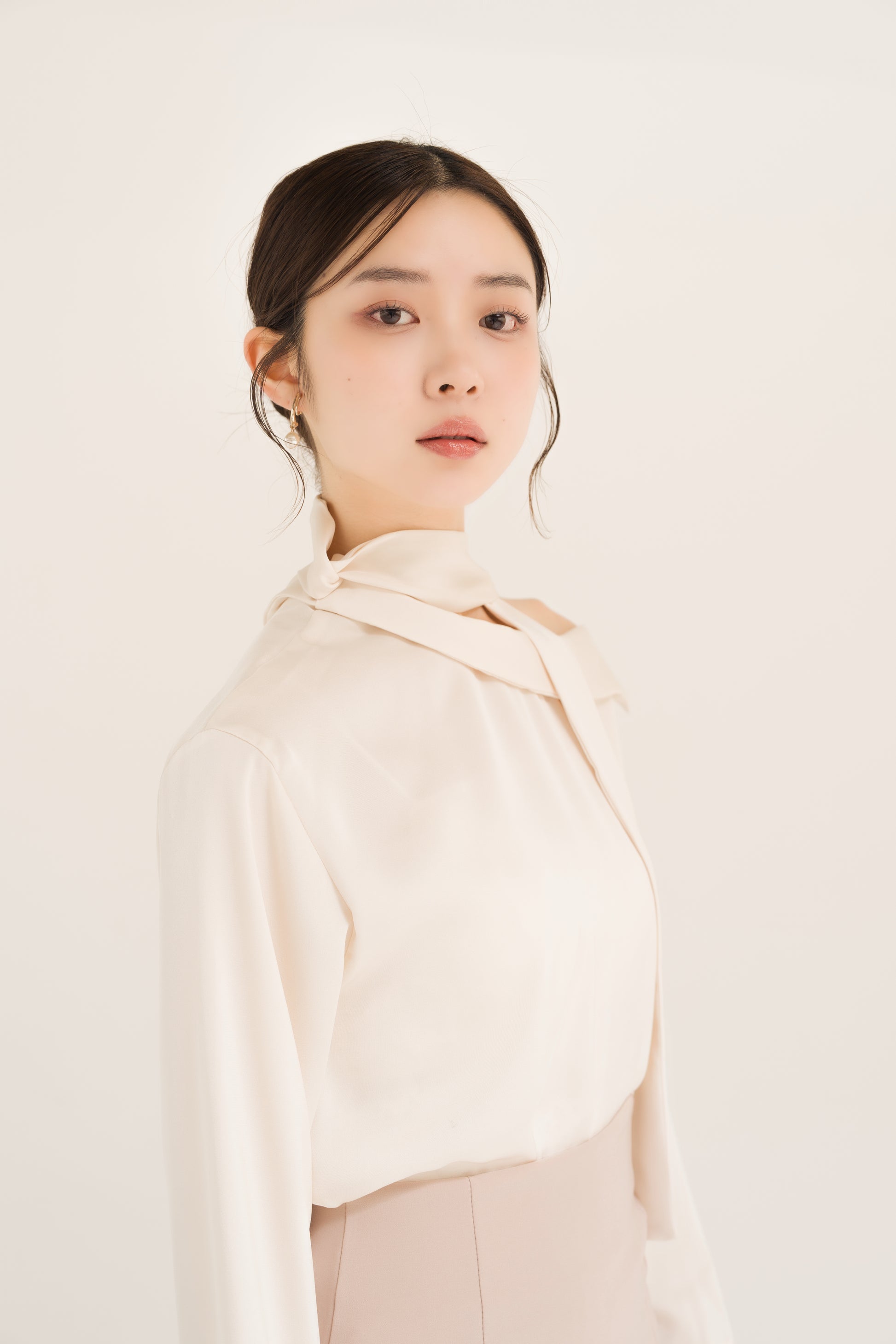 サテンアシンメトリータイブラウス
